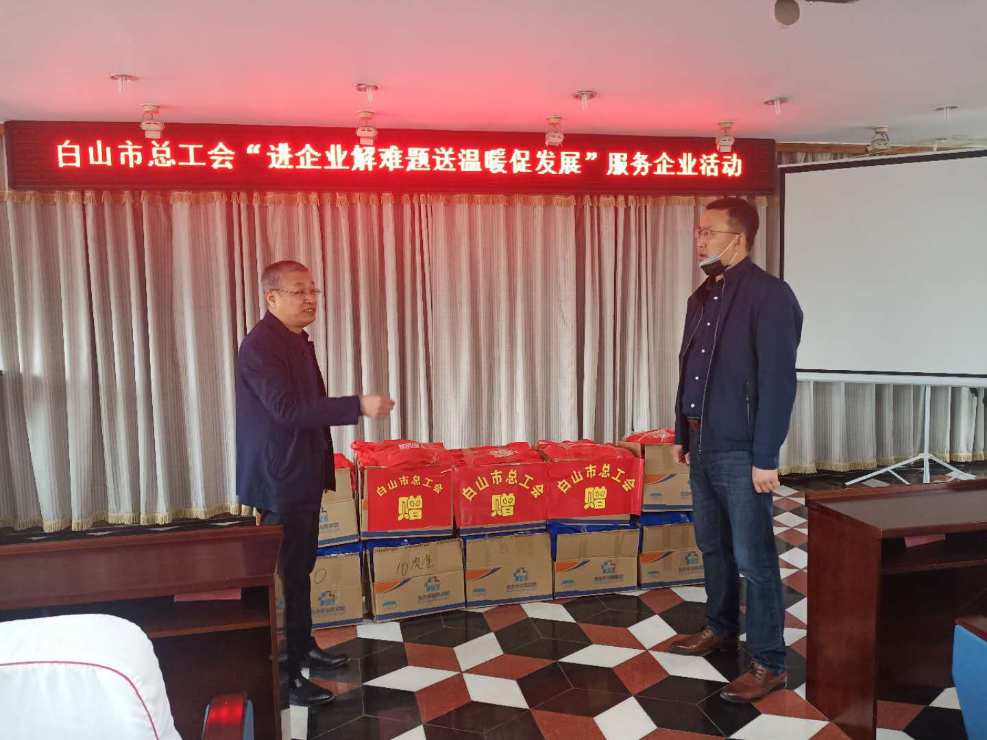 5月6日市总工会副主席宋茂源一行来到喜丰公司开展“进企业、送温暖、解难题、促发展”服务企业活动。宋茂源详细了喜丰公司疫情防控和复工复产情况,并代表市总工会慰问了一线员工。